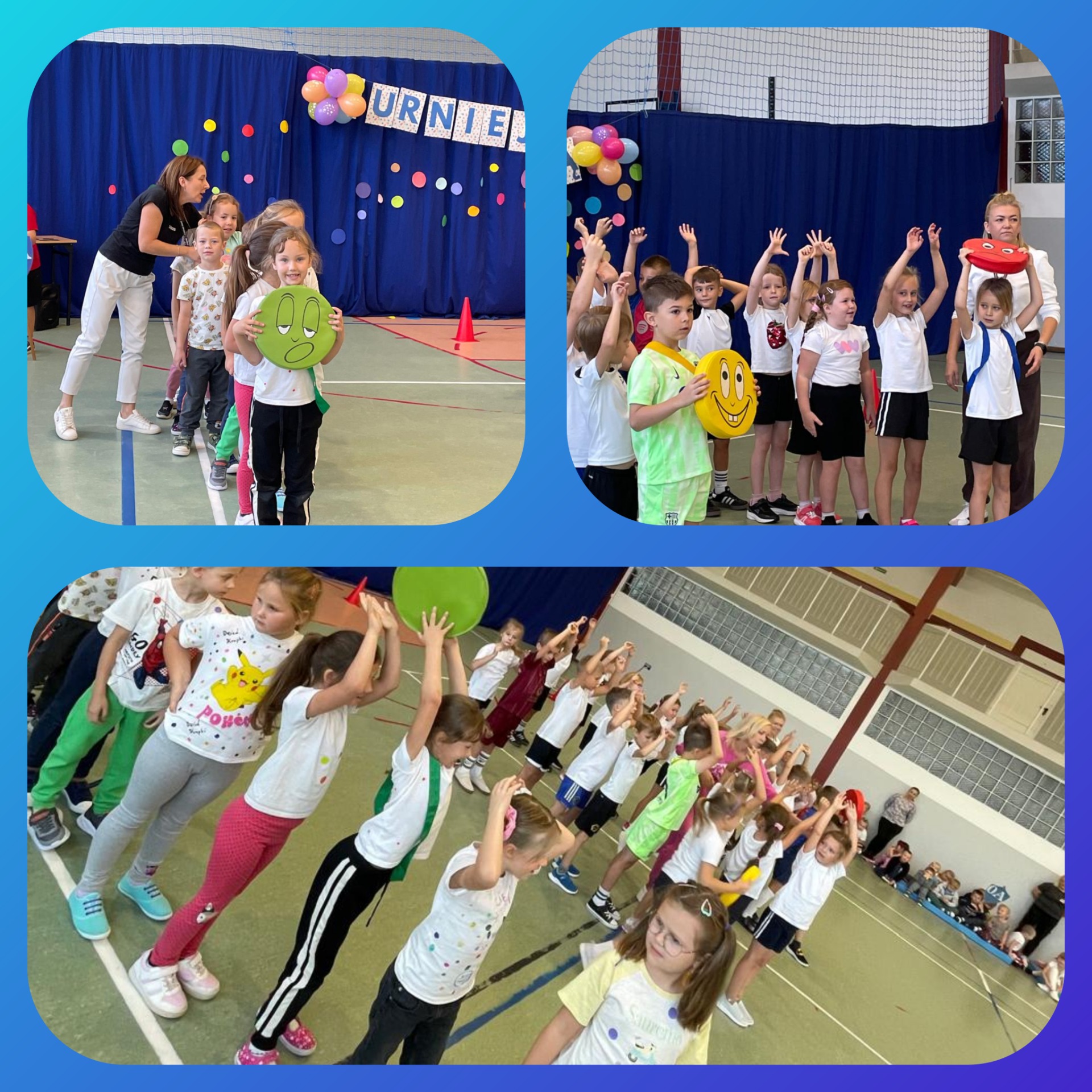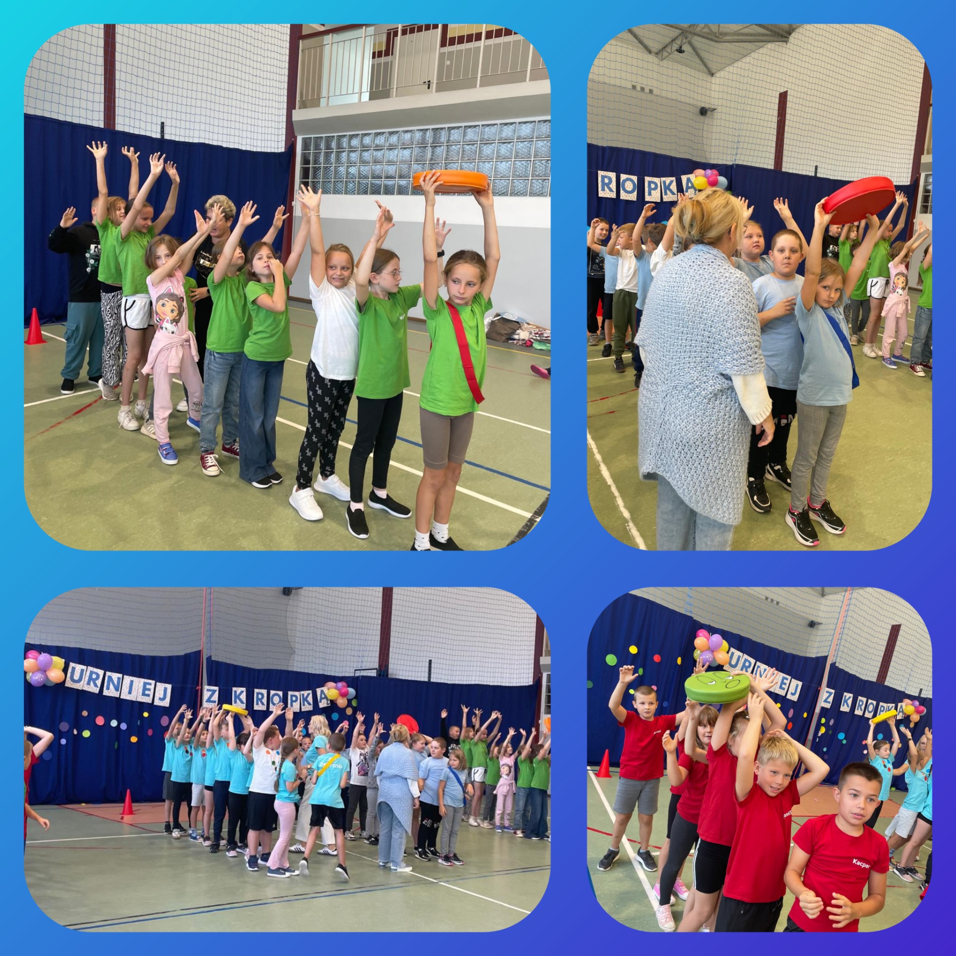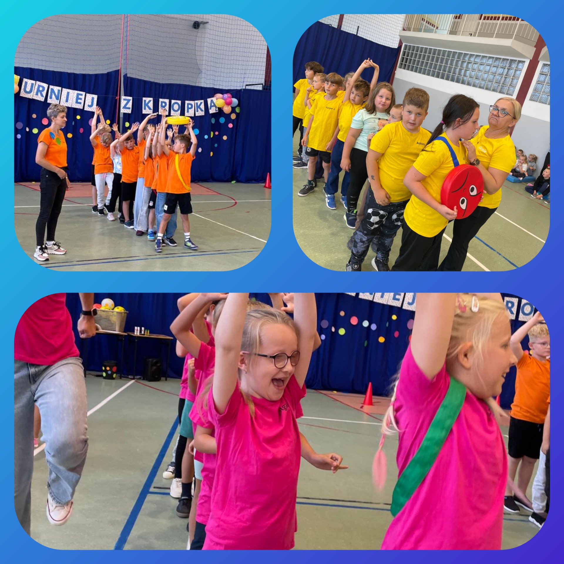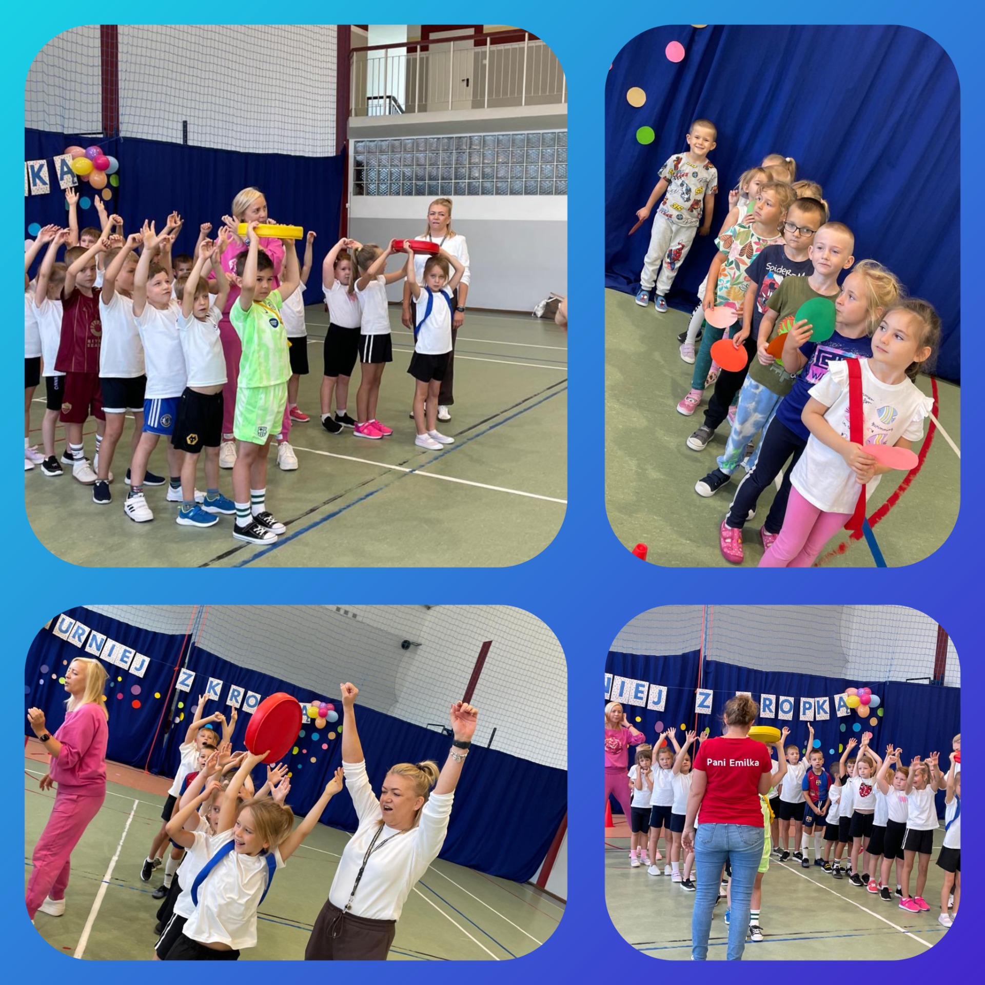 W naszej szkole odbył się pierwszy turniej sportowy „z kropką”, w którym udział wzięły klasy 0-3. Uczniowie rywalizowali w różnych konkurencjach sportowych, wykazując się sprawnością, współpracą i dobrym humorem. Każda klasa zdobyła nagrodę, a wydarzenie przebiegło w atmosferze radości i wspólnej zabawy.