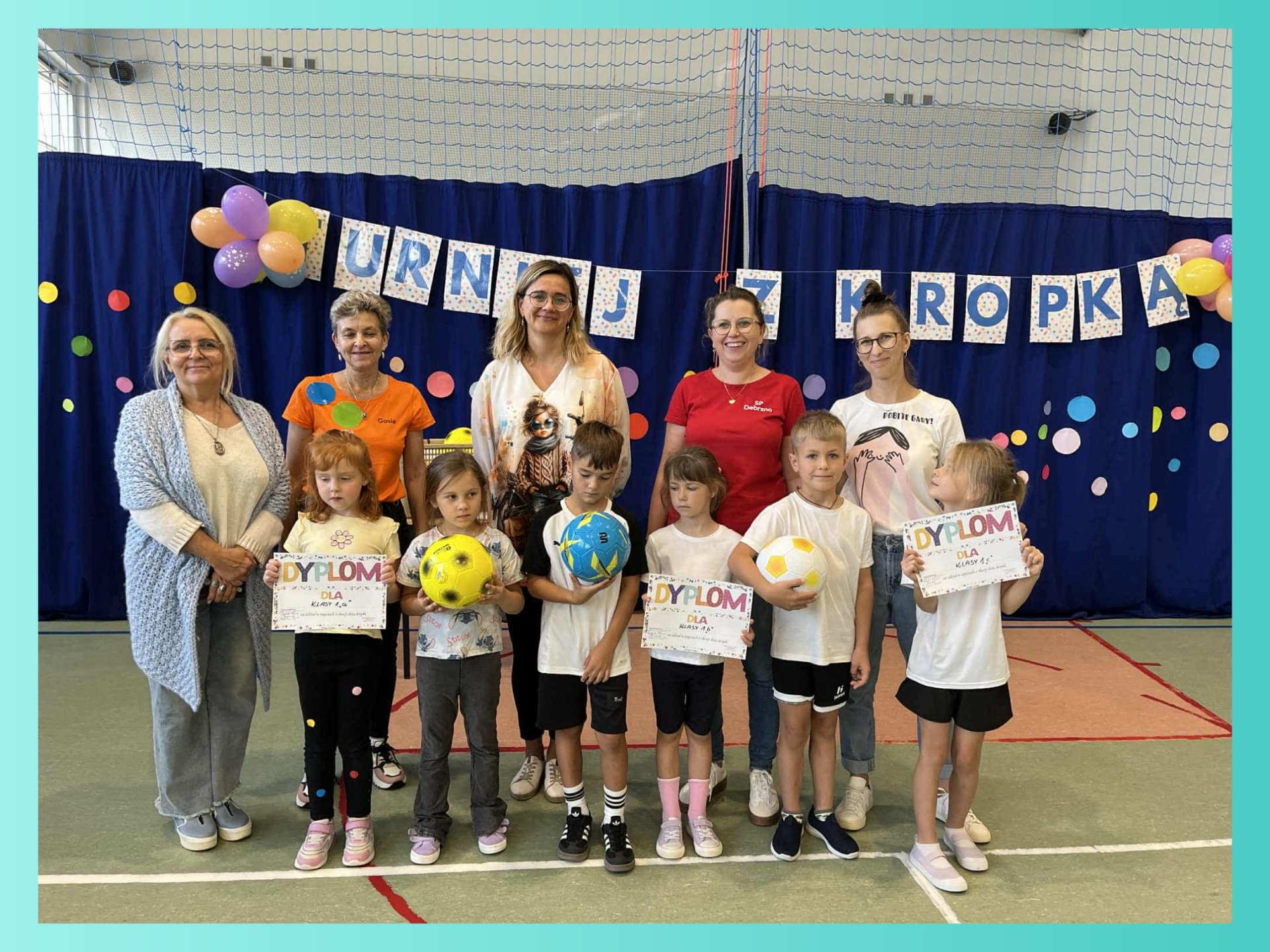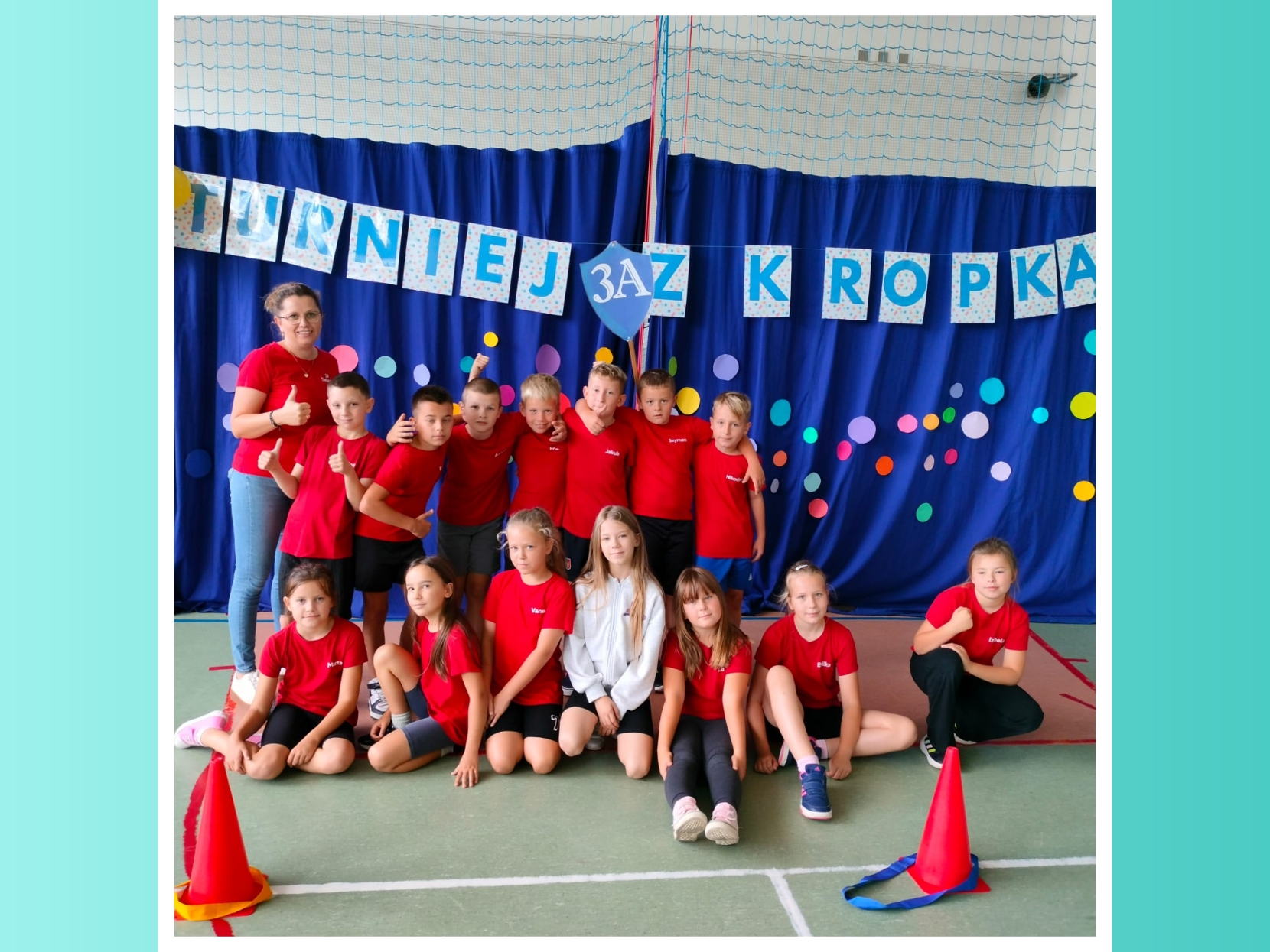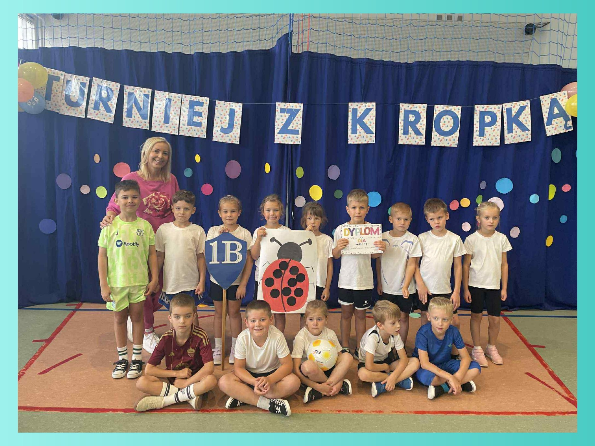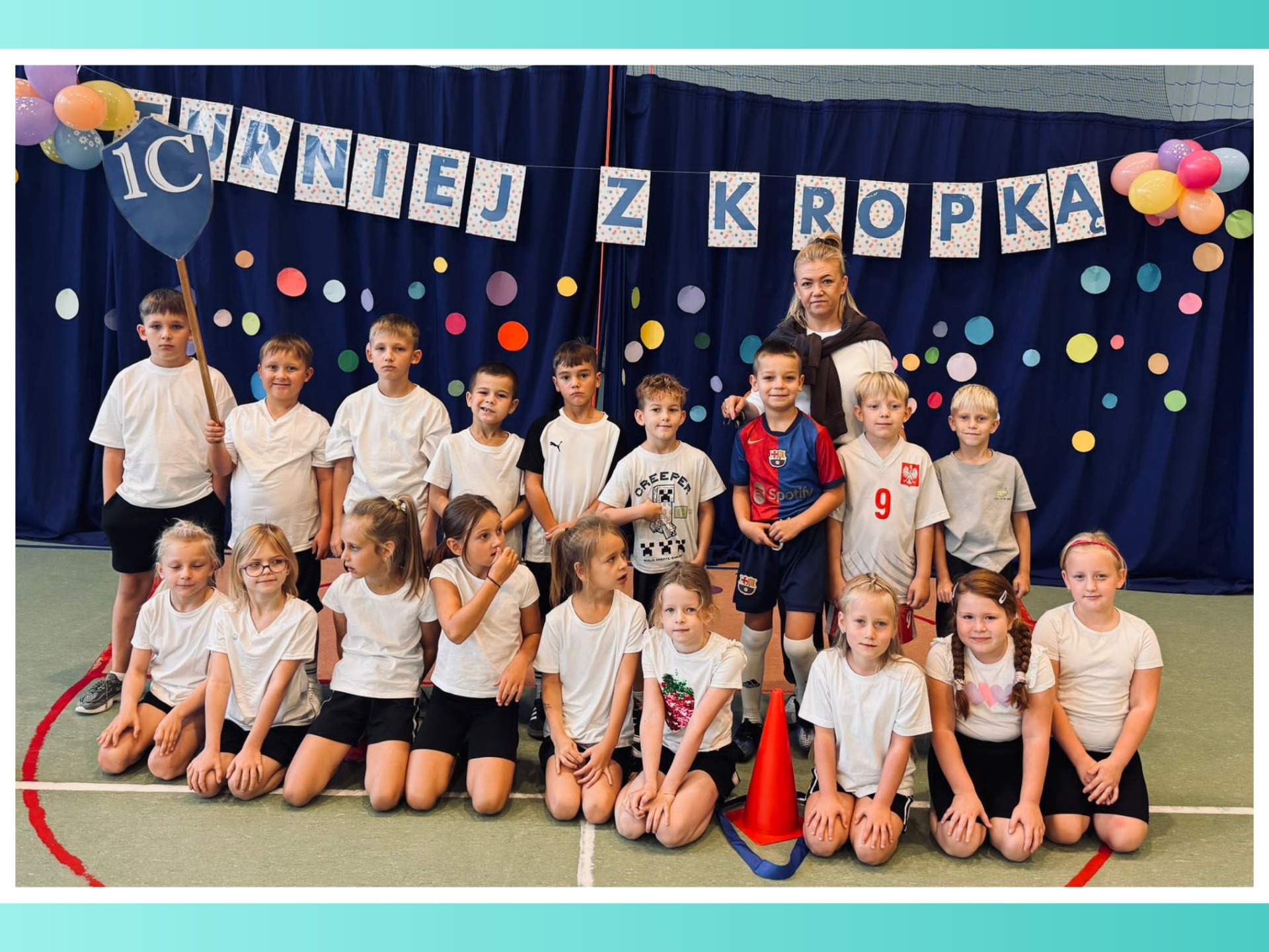 W naszej szkole odbył się pierwszy turniej sportowy „z kropką”, w którym udział wzięły klasy 0-3. Uczniowie rywalizowali w różnych konkurencjach sportowych, wykazując się sprawnością, współpracą i dobrym humorem. Każda klasa zdobyła nagrodę, a wydarzenie przebiegło w atmosferze radości i wspólnej zabawy.