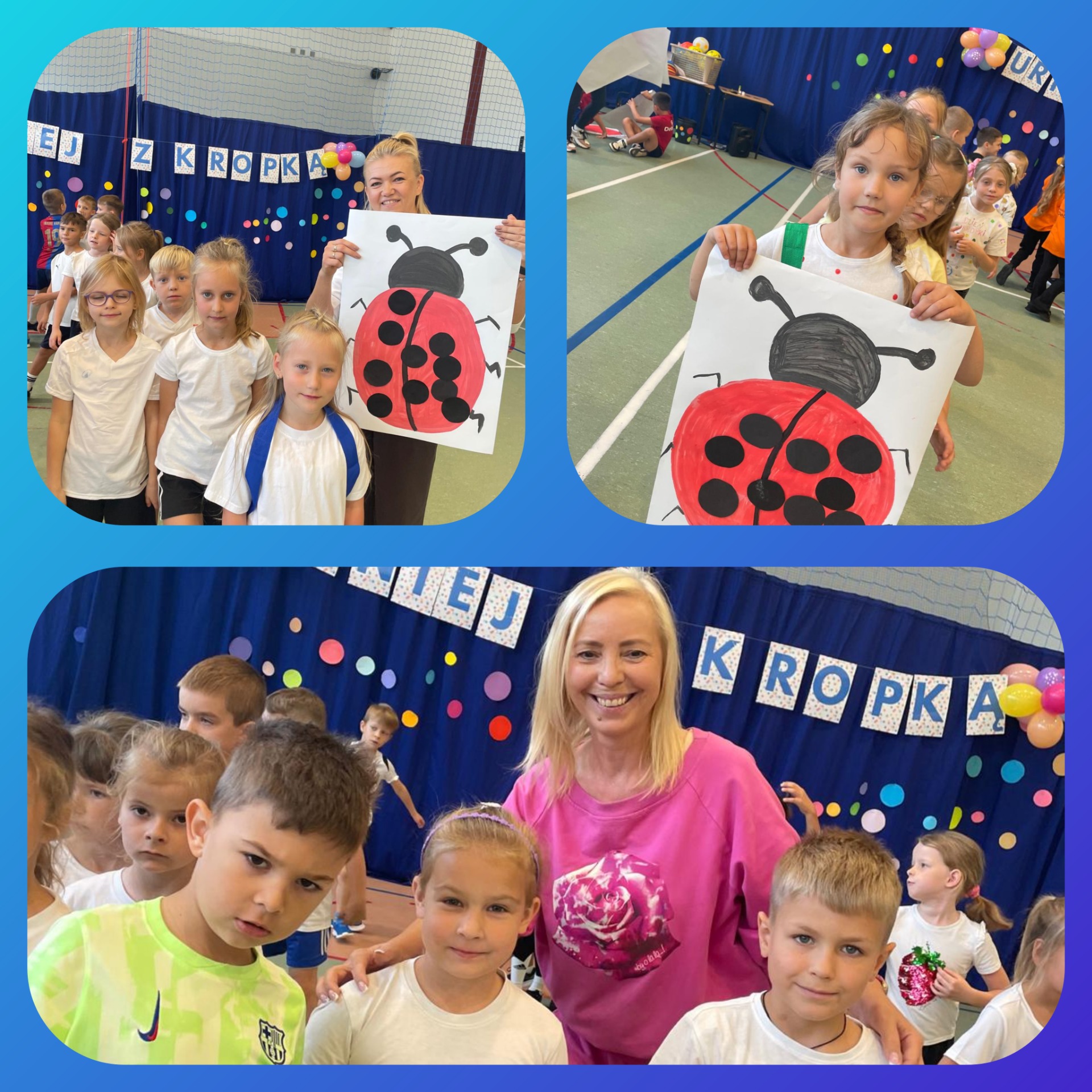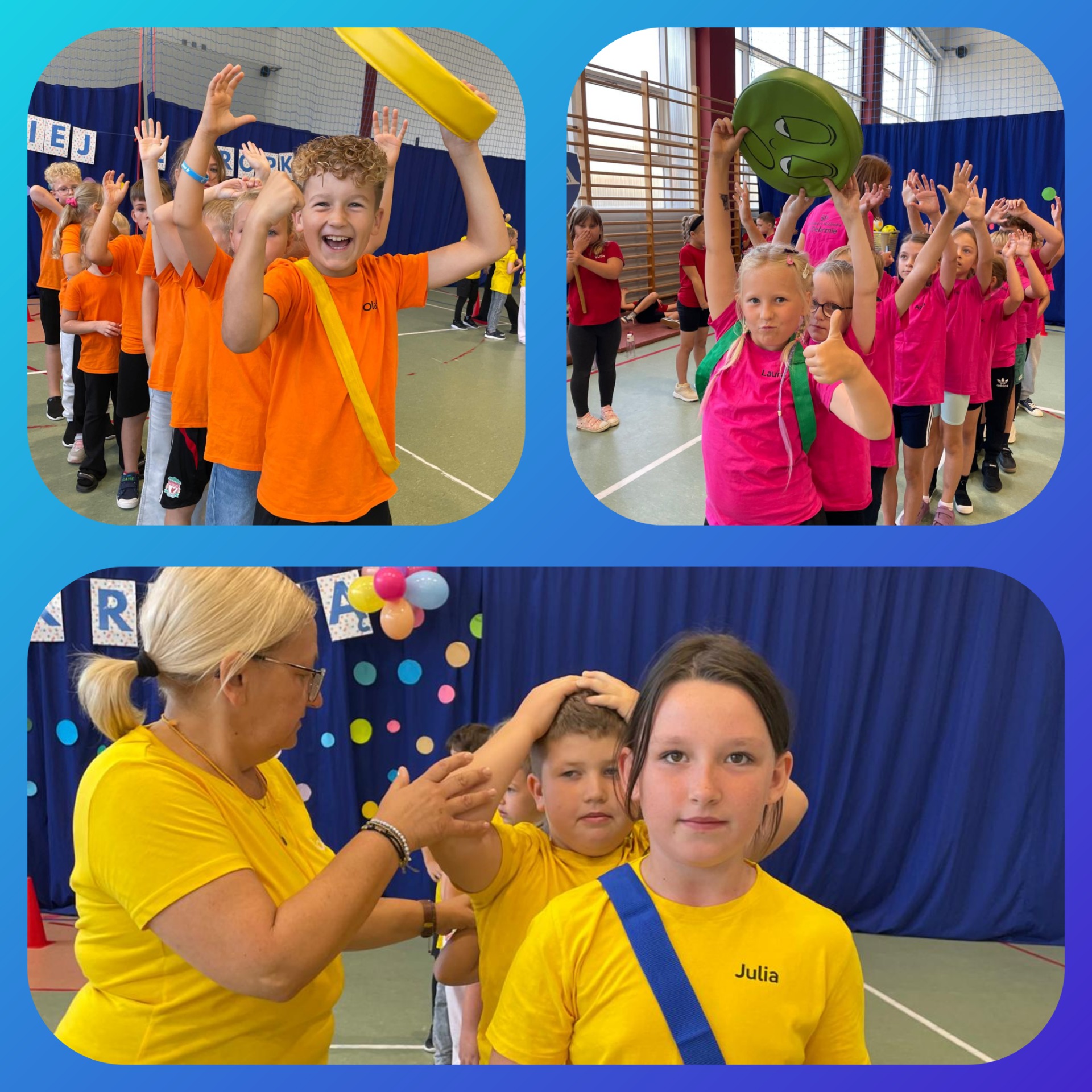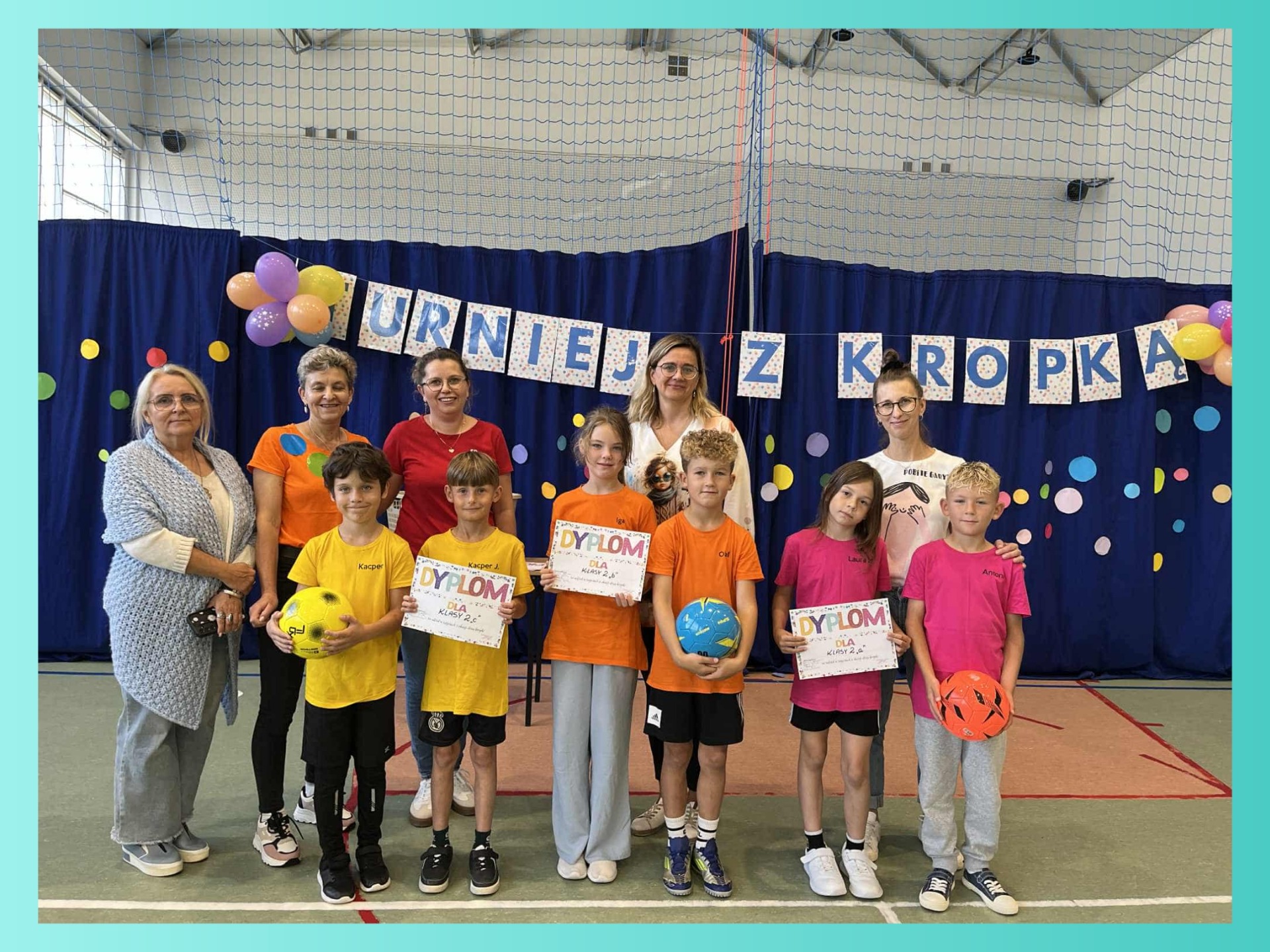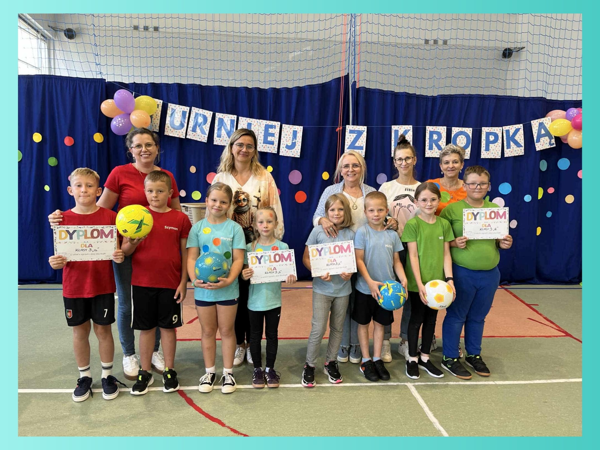 W naszej szkole odbył się pierwszy turniej sportowy „z kropką”, w którym udział wzięły klasy 0-3. Uczniowie rywalizowali w różnych konkurencjach sportowych, wykazując się sprawnością, współpracą i dobrym humorem. Każda klasa zdobyła nagrodę, a wydarzenie przebiegło w atmosferze radości i wspólnej zabawy.
