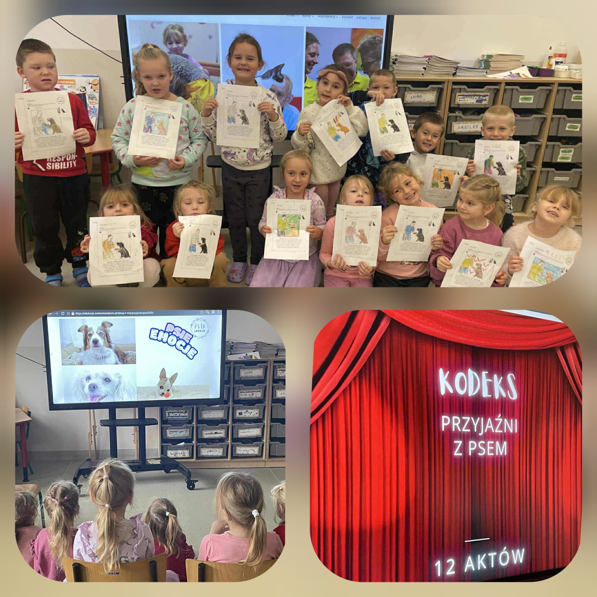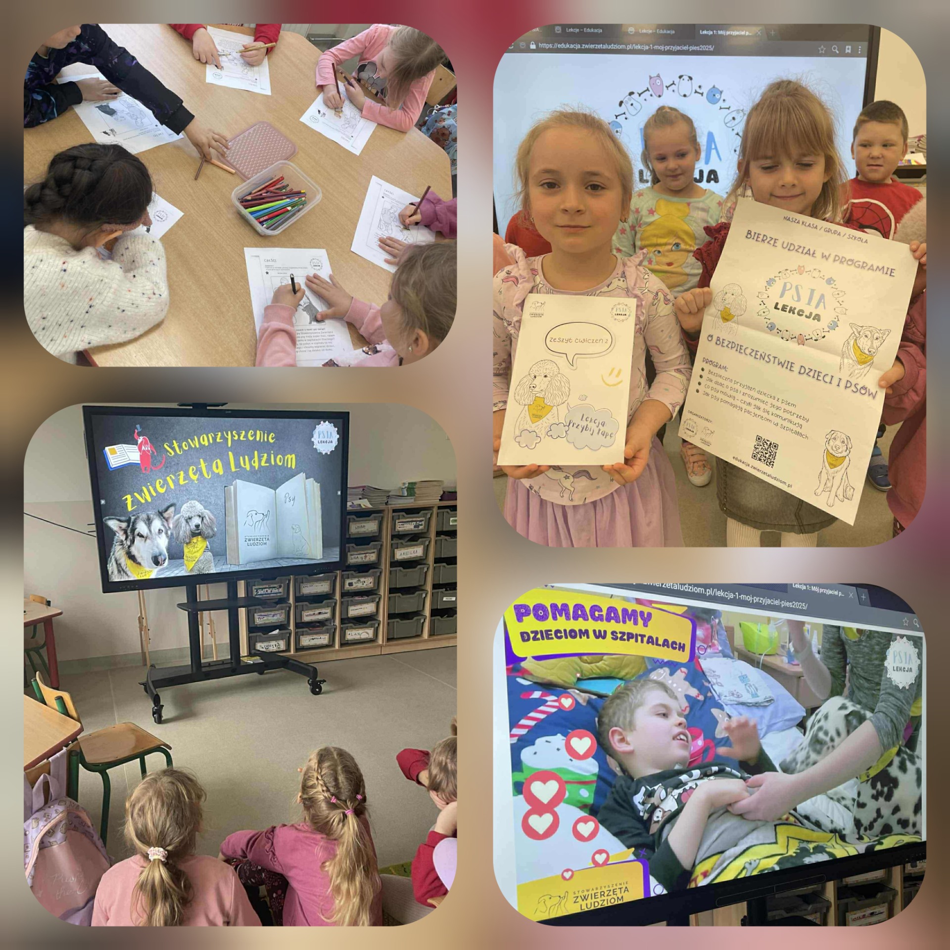 Klasa 0b uczestniczy w programie,,Psia lekcja” prowadzonego przez Stowarzyszenie Zwierzęta Ludziom. Podczas lekcji dowiedzieliśmy się, jak prawidłowo opiekować się psami i jak bezpiecznie się z nimi kontaktować. Prowadzący opowiedzieli o potrzebach i emocjach zwierząt.
