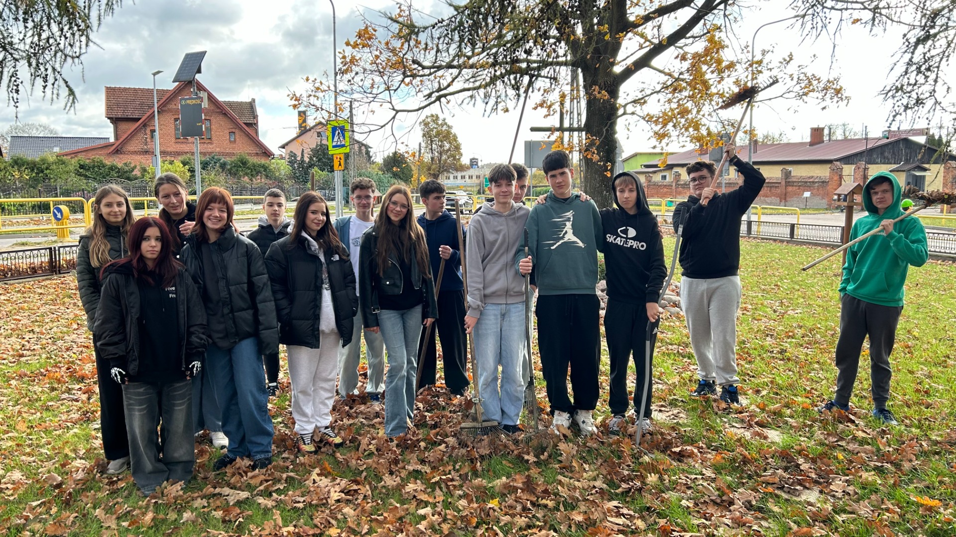 Już po raz kolejny uczniowie klasy VIIIb, Szkoły Podstawowej im Polskich Noblistów w Debrznie oczyścili skwer przyszkolny pozostawiając sterty liści do dyspozycji zwierząt. Niektórzy uczniowie nabyli umiejętności posługiwania się grabiami, co okazało się całkiem fajną zabawą.
