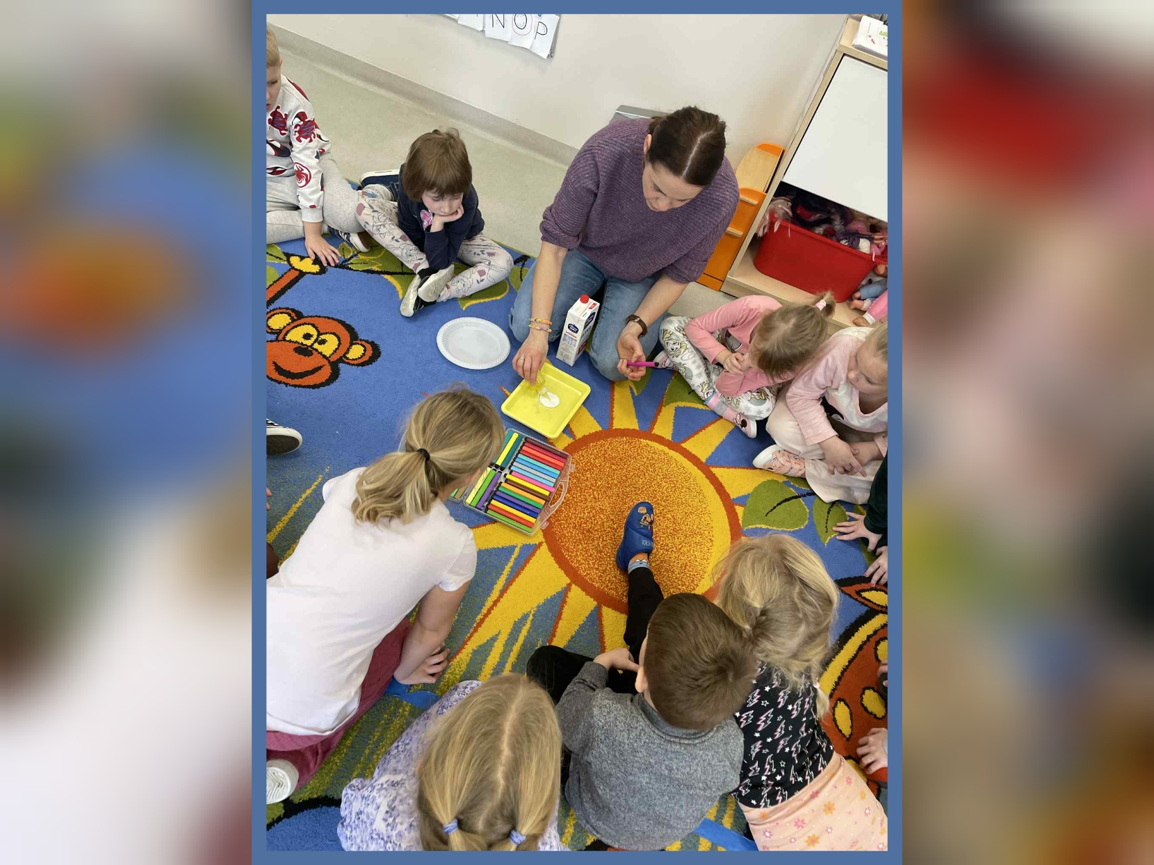 W oddziałach przedszkolnych 0a i 0b odbyły się zajęcia STEAM realizowane w ramach projektu ,, Przedszkola Marzeń w Gminie Debrzno” podczas których dzieci uczestniczyły w eksperymencie „malowanie na mleku”. Na płatki kosmetyczne naniosły krople płynu do naczyń, dodały wokół barwniki, a następnie włożyły płatki do mleka. W efekcie powstały kolorowe wzory przypominające kwiaty.